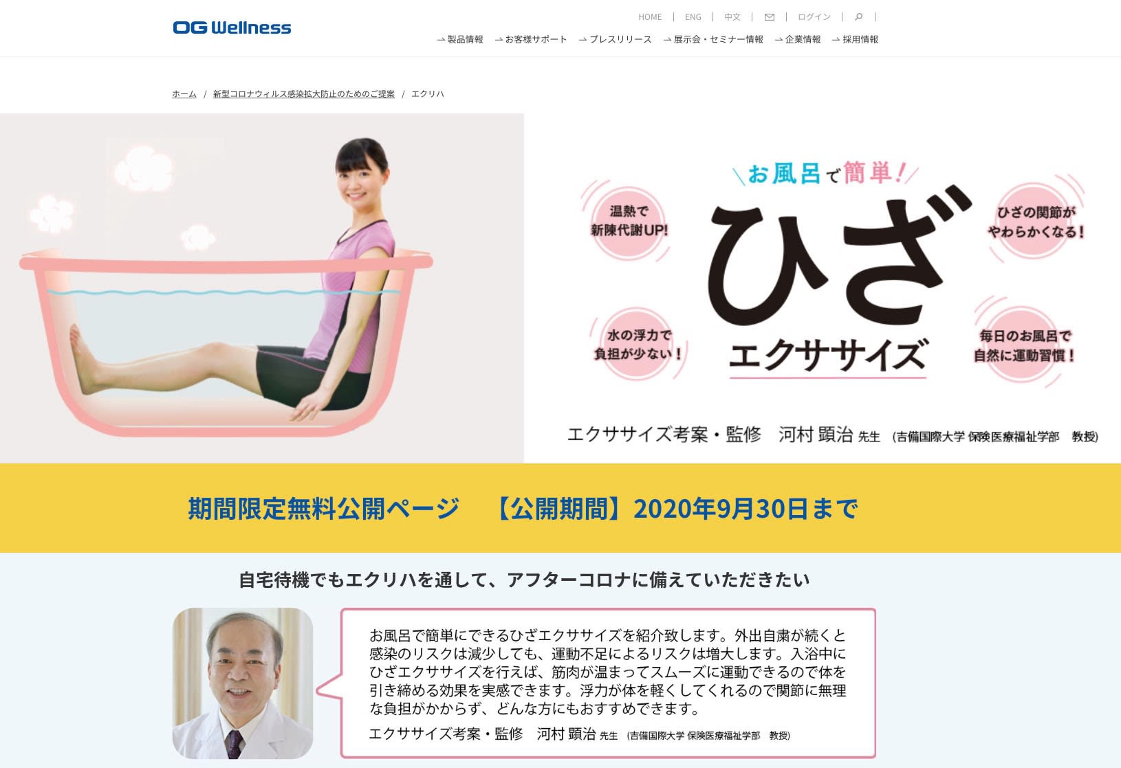 オージー技研が入浴エクササイズ動画を公開 河村顕治研究室