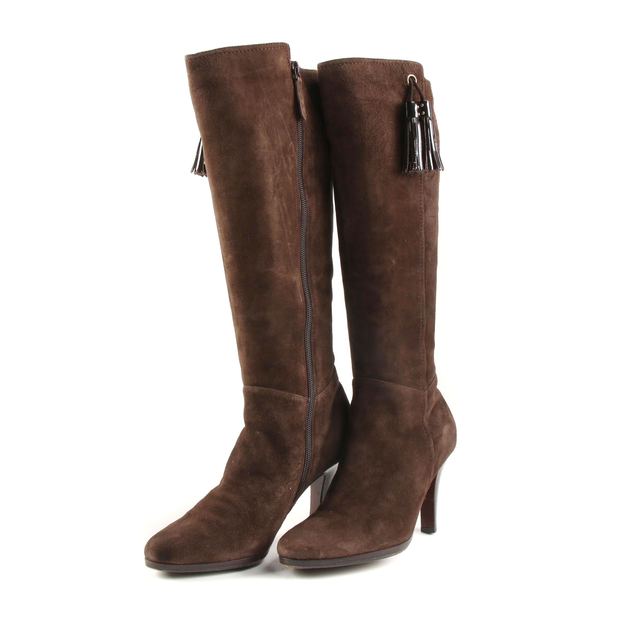 Cole Haan Nike Air Dark Brown Suede High Heeled Tall Boots With Tassels Ebth