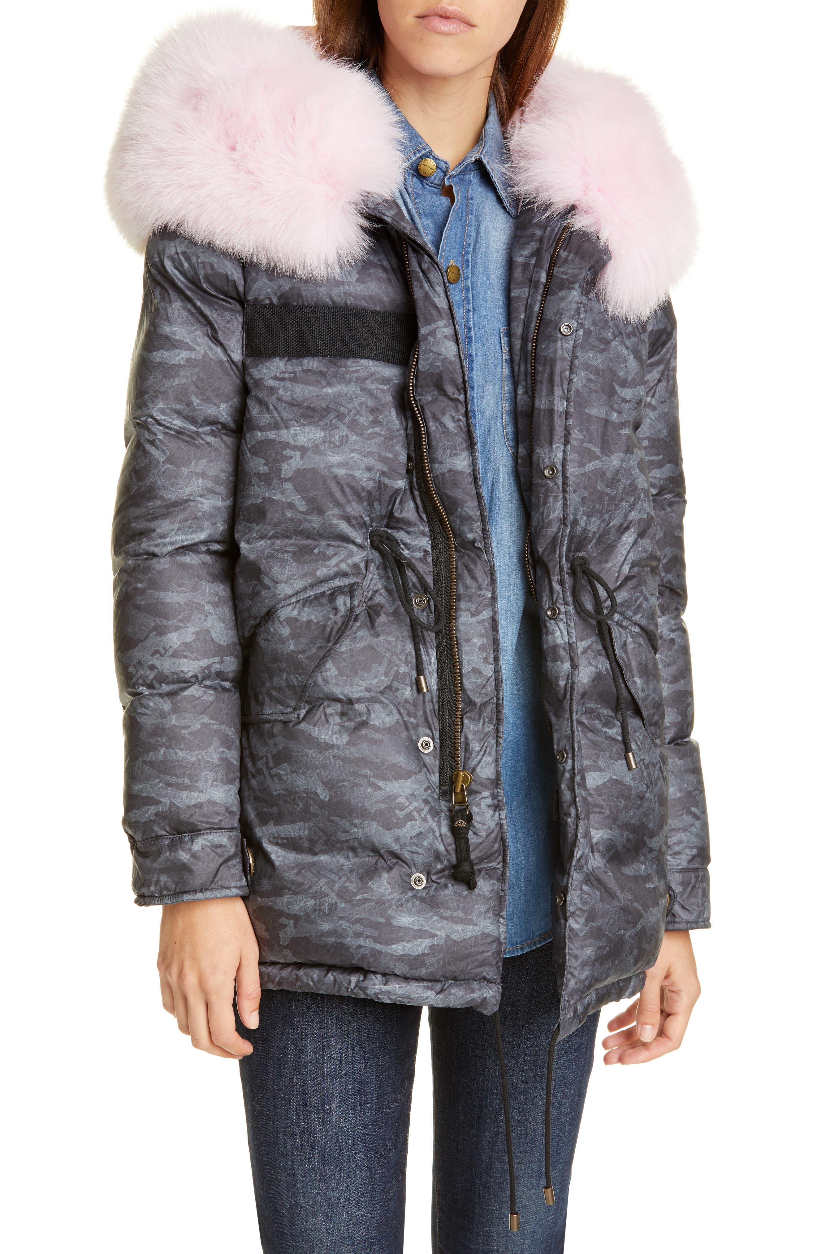 Mr Mrs Italy Genuine Fox Fur Trim Down Fill Camouflage Puffer Coat Nordstrom